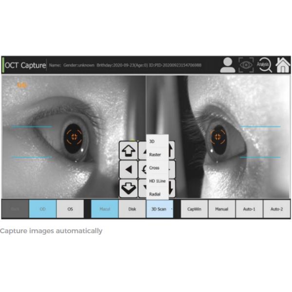 • Fully automatic one-key operation, automatic eye tracking, automatic tomography of the macula, optic disc and other parts